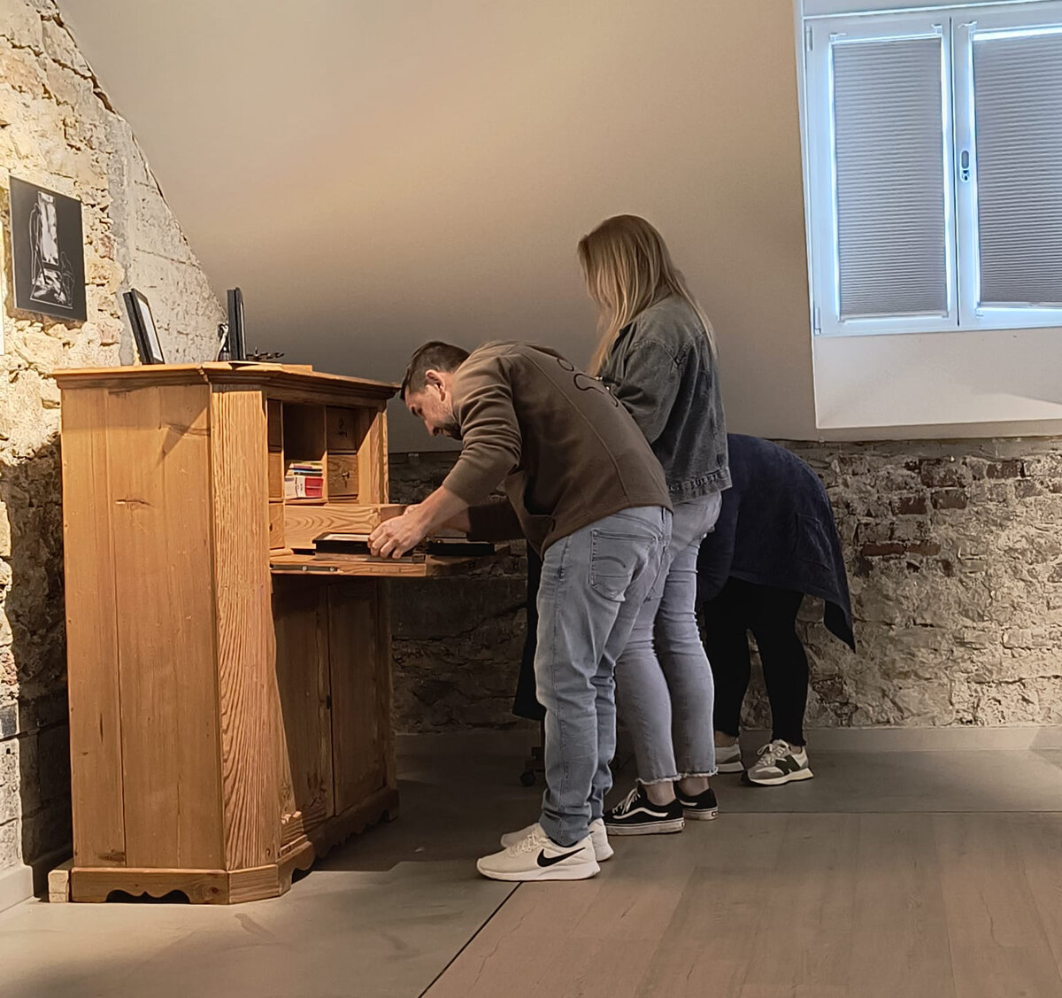 - Plot: Am 5. August 1860 fuhr der erste Zug auf der Ruhr-Sieg-Strecke. Zwischen Grevenbrück und Meggen entgleiste der Festzug: Im Escape Room ermitteln die Teilnehmenden den Grund für das Unglück und lernen nebenbei den Diskurs um den Bau der Strecke, aber auch die Ausstellung kennen.