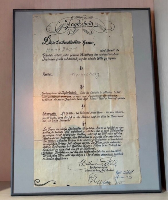 Als „Exponat des Monats“ wird ein sogenannter „Jagdschein“ präsentiert. Das Dokument erinnert an einen alten, heute nur noch selten ausgeführten Brauch und bringt seinerzeit bekannten Wortschatz wie „deckeln“ oder „friggen“ wieder ins Gedächtnis.