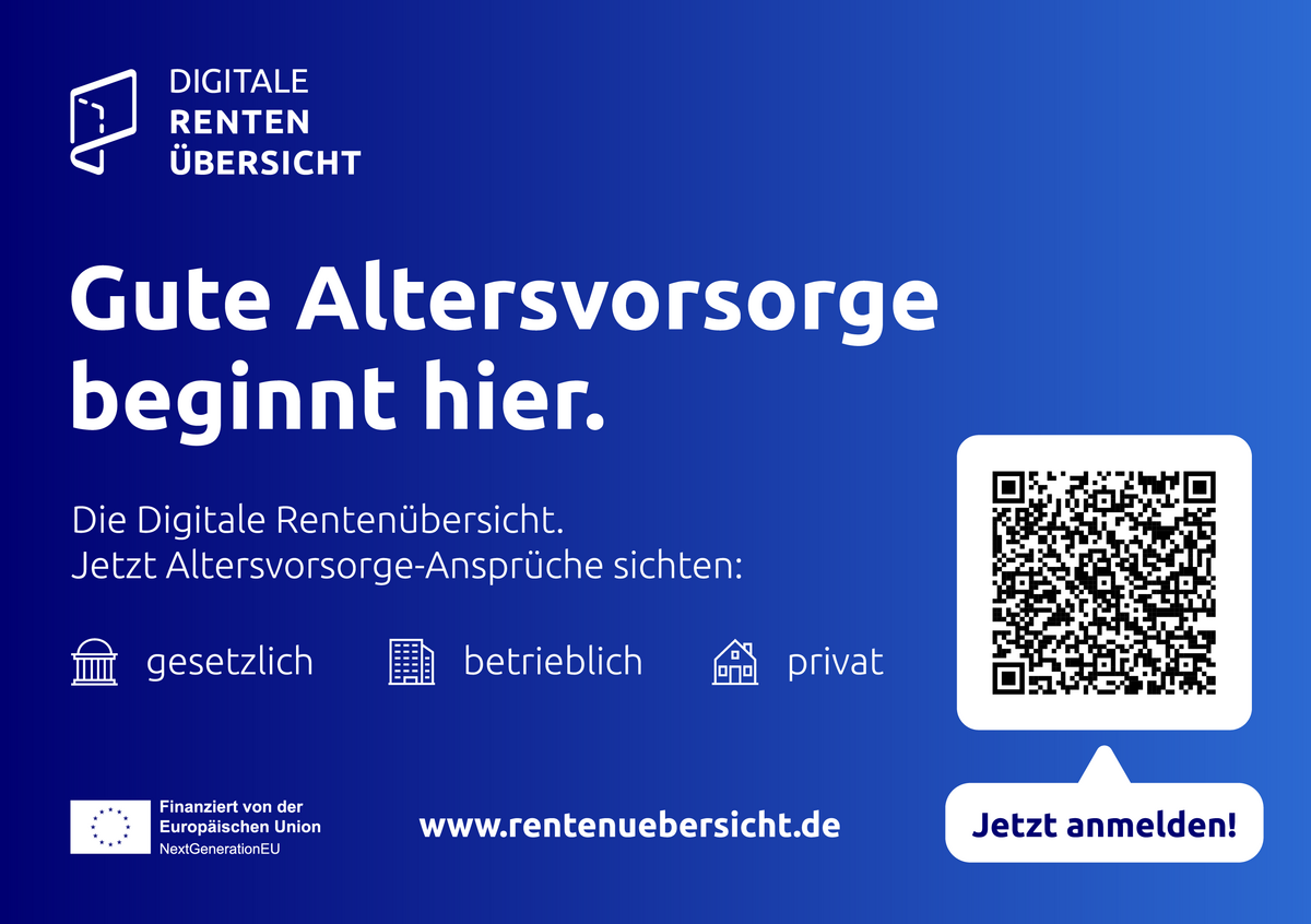 Die Deutsche Rentenversicherung stellt mit der "Digitalen Rentenübersicht" erstmalig eine kostenfrei nutzbare Plattform zur Verfügung, auf der Bürgerinnen und Bürger einen individuellen Gesamtüberblick über die eigenen gesetzlichen, betrieblichen und privaten Altersvorsorgeansprüche einsehen können. Die dafür benötigten Daten liefern alle Anbieter von Altersvorsorge-Produkten, die eine jährliche Standmitteilung verschicken und mehr als 1.000 Vorsorgeansprüche verwalten.
